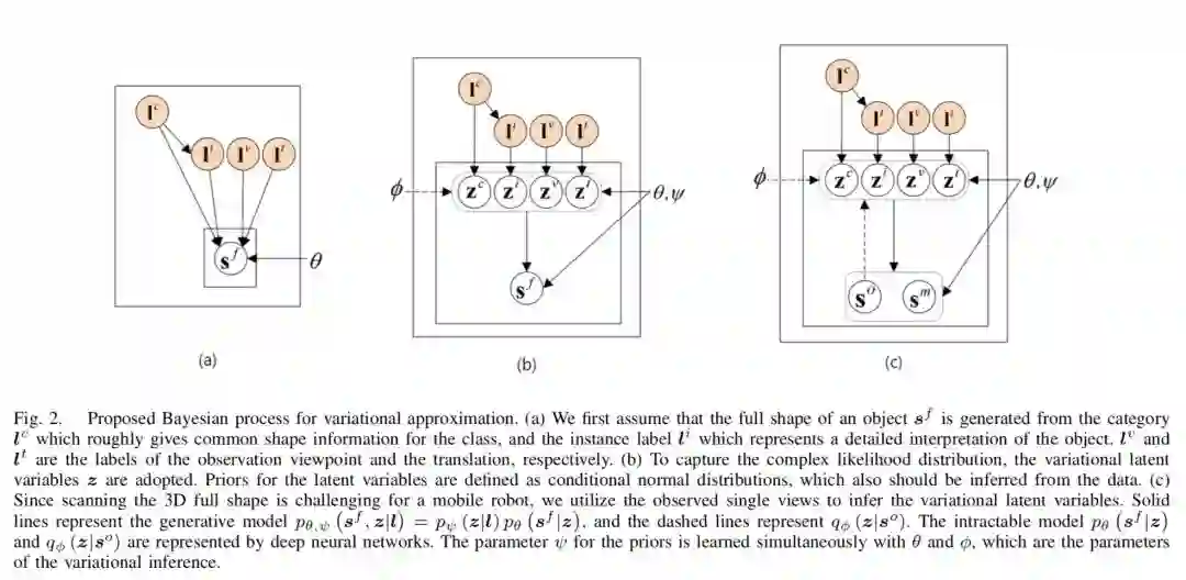 为了能够实现针对贝叶斯推断的数值分析,作者以易处理的分部来估计三维物体的真实观测模型。由于观测的似然可以由生成模型获得,作者使用贝叶斯网络来表示三维物体的真是生成模型。作者使用了变异的自动编码器来完整表达这复杂的分布。