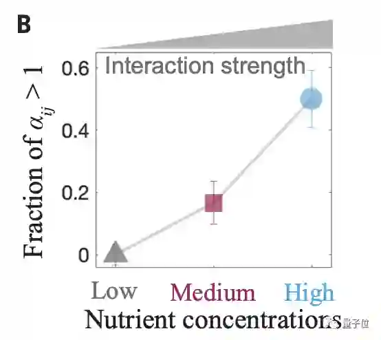 此外他们发现,成对共生的概率随着补充的葡萄糖和尿素浓度的增加而降低。这意味着,通过增加营养物质的方式,可以用来加强物种之间的相互作用。