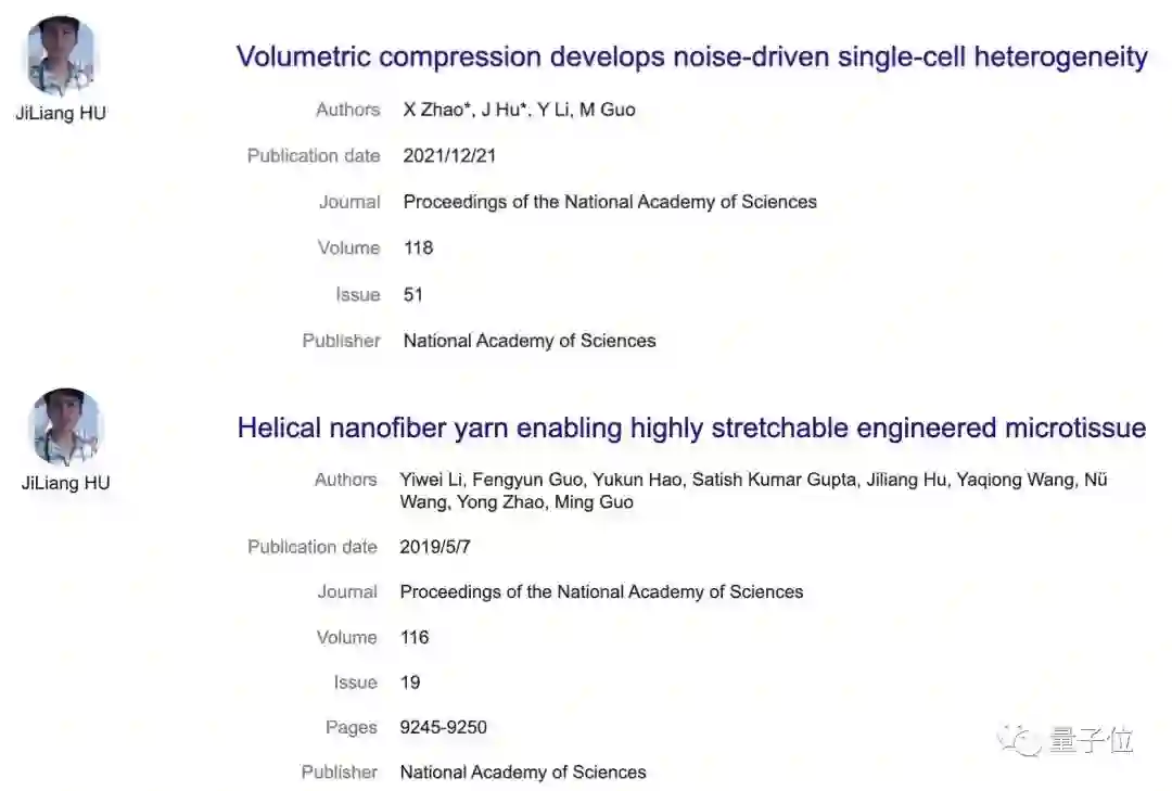 本科期间,胡脊梁共发表5篇论文,其中1篇还是以共同一作身份,发表在PNAS上。