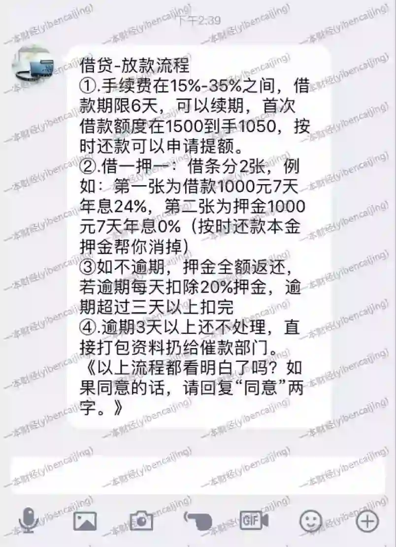 借款人到手1000元,7天后却要还1500;一旦逾期,一天的罚金就是200元。