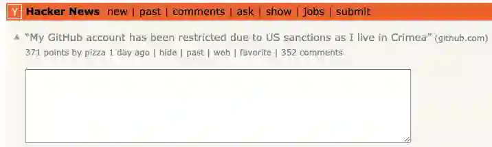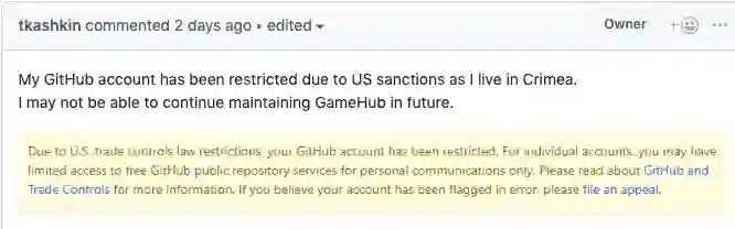 7 月 26 日,Hacker News 首页有个热帖,一位的开发者 tkashkin 称:我住在克里米亚(Crimea),因美国制裁,我的 GitHub 账号已受限制。