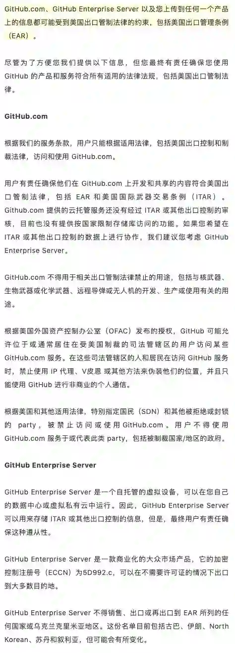 我们曾经翻了 GitHub 官网的《GitHub 与贸易管控》: