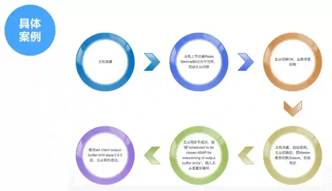 1、repl-backlog-size太小,默认是1M,如果你有大量的写入,很容易击穿这个缓冲区;2、repl-timeout,Redis主从默认每十秒钟ping一次,60秒钟ping不推就会主从重置,原因可能是网络抖动、总节点压力过大,无法响应这个包等;3、tcp-baklog,默认是511。操作系统的默认是限制到128,这个可以适度提高,我们提高到2048,这个能对网络丢包现象进行一定容错。