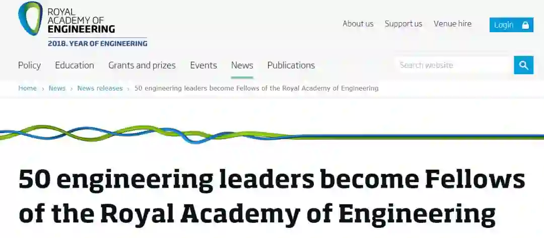 9月18日,英国皇家工程院2018年度新增50名院士名单正式揭晓。
