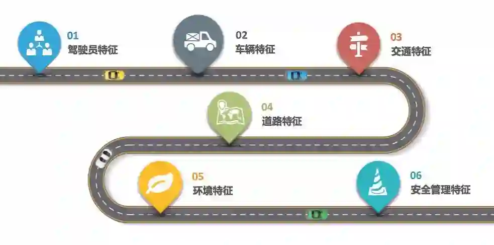 综合事故数据和可能影响事故发生的驾驶员特征、车辆特征、交通特征、道路特征、环境特征、安全管理特征等因素,实现历史经验与新知识的结合,动态评估高速公路交通系统的安全状态。