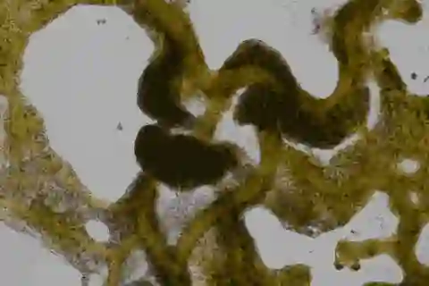 高倍率下的多头绒泡菌通过巨大的单一细胞猛烈地泵送细胞质流