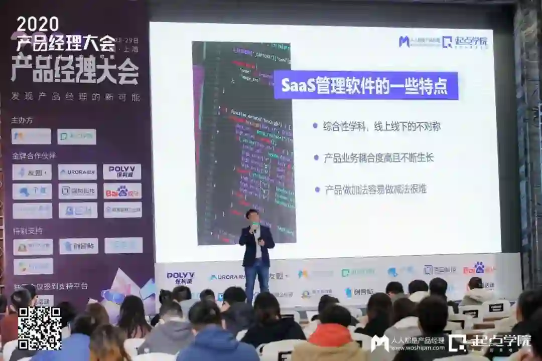 在分享中,他从产业互联网的本质讲起,接着谈到SaaS产品目前的困境,以及在做B端产品时的一些原则,给现场的产品经理以启发。