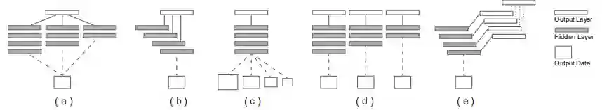 (b) Skip-layer network learning:该结构有一个主干网络,在主干网络中添加若干条到输出层的skip-layer,类似的结构有FPN;