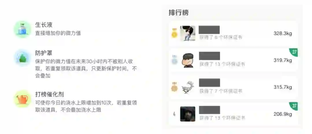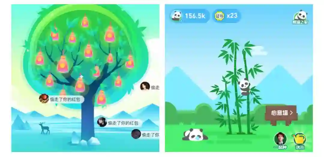 所以,分享、邀请、正面互动(赠能量、提醒、帮收能量)、负面互动(偷能量、蹭吃、驱赶、防御)、弹幕留言、一起种树(eg:爱情树、亲情树、友情树)等也是不可缺少的。