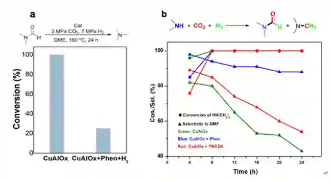 控制实验(a,DMF加氢反应;b,二甲胺与CO2/H2制备DMF/三甲胺)