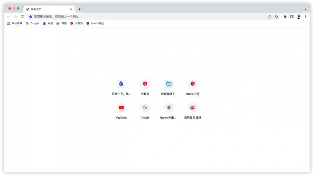 可以看出,关于浏览器 newtab 的花样确实很多。网址导航、to-do list、番茄钟……各种玩法都很有趣。可我和大家的喜好偏偏相反,我特别钟情于纯空白页,讨厌 newtab 中出现任何元素。🌚