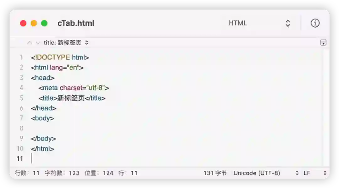 并解压,打开 newtab.html 文件。随后将第 6 行代码中的