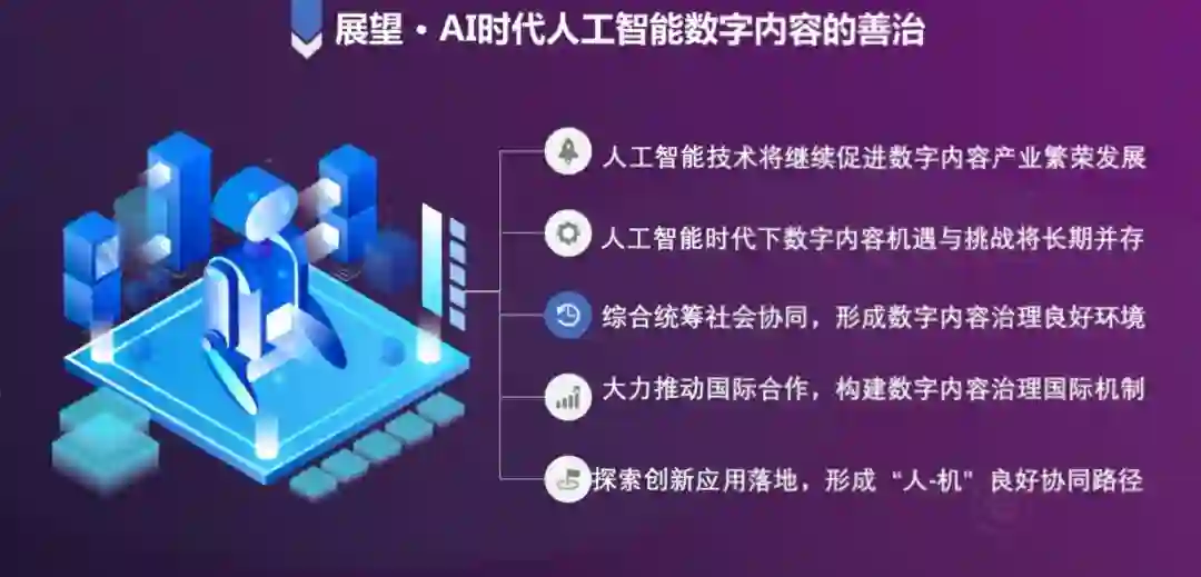 另一方面,风险挑战本身亦是安全应用的广阔发展前景,对人工智能技术本身的优化,以及对其在治理各环节应用的积极探索,能够为治理机制的完善提供技术支撑,保障数字内容产业健康高质量发展。