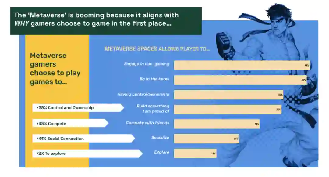 元宇宙中的游戏玩家最在意的因素包括:探索世界、与其他游戏玩家竞技、与其他游戏玩家建立社交