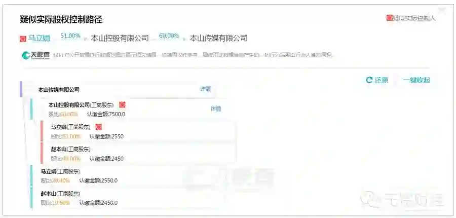 ▲本山传媒股权结构。(来自天眼查)