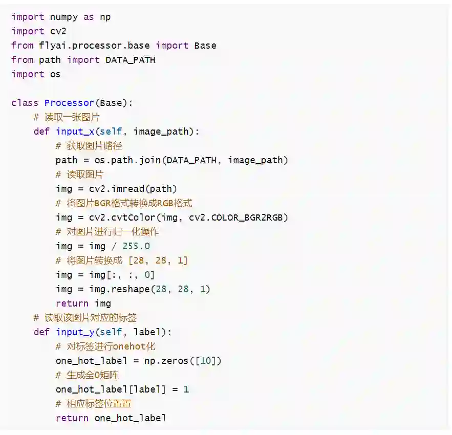 对单张图片等数据的读取是在processor.py文件中完成。实现如下: