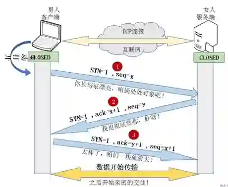 举个栗子:把客户端比作男孩,服务器比作女孩。用他们的交往来说明“三次握手”过程: