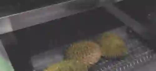 要对新鲜果肉进行常用的冷冻处理 —— 冷冻干燥,就是将榴莲果肉冷冻后进行真空处理,再把里面的水分升华掉,这样就能保持果肉原有的风味。