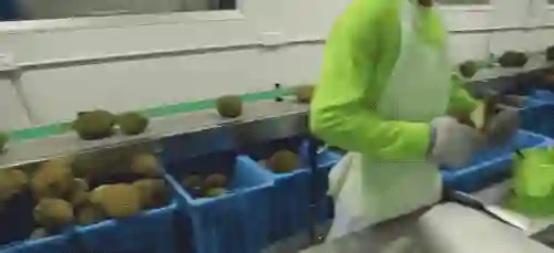 成熟的榴莲保质期很短,需要尽快进行加工处理。首先利用可食用氯进行果皮杀菌,就在下图这样的处理室内进行。