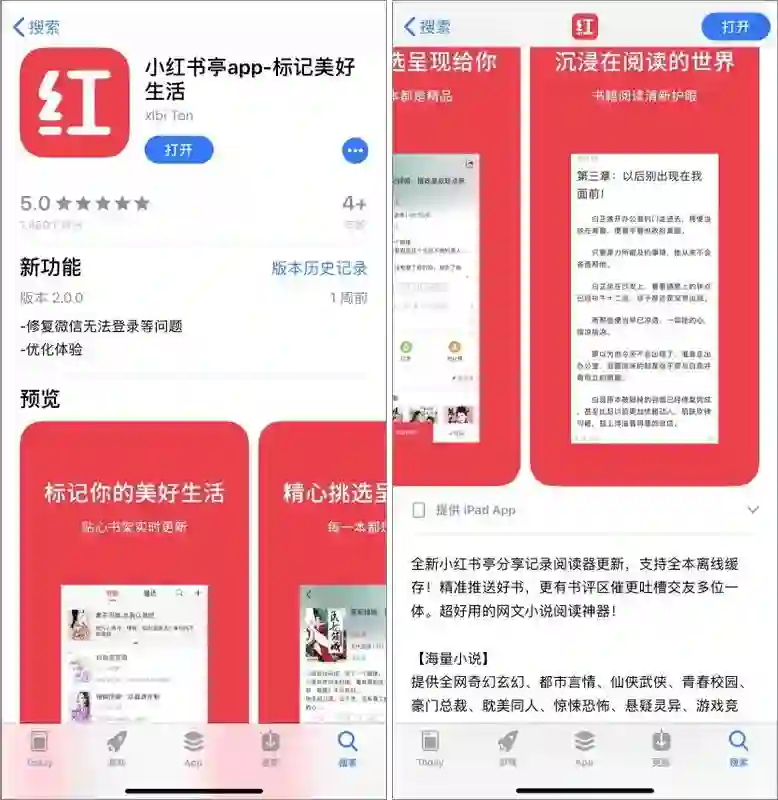 比如这个“小红书亭”,同样是小说阅读 App,我就想知道,看个小说怎么就能“标记美好生活”了?
