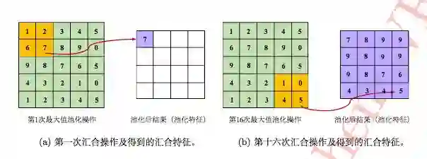接下来我们再看一下卷积操作,它没有参数,我们只需要给它设置最大池化和平均池化。最大池化是指将覆盖区域的最大值取出来——它的目的就是把最显著的特征取出来,将一些不太明显的特征忽略掉。