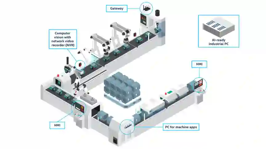 在制造业中,至强可扩展处理器可作为边缘计算设备,也可为多功能平台提供基本计算能力,以支持各种 AI 场景与模型。