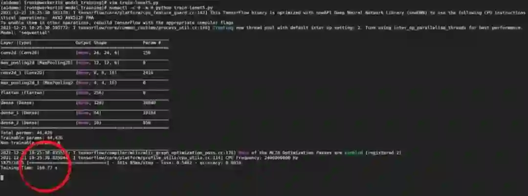 现在如果我们在英特尔® 至强® 可扩展处理器上使用 TensorFlow 训练 LeNet-5,那么重要的是确定最优并发线程数,以及最优算力分配方案,这样才能充分利用 CPU 的能力。