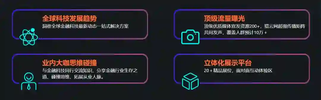 除此之外,还有哪些机遇?猎云网诚邀行业内专业人士一同探讨,通过金融科技峰会这样的形式,让传统金融机构、金融科技巨头以及金融科技创企一起来畅聊如何更好地做到开放融合,实现共赢。