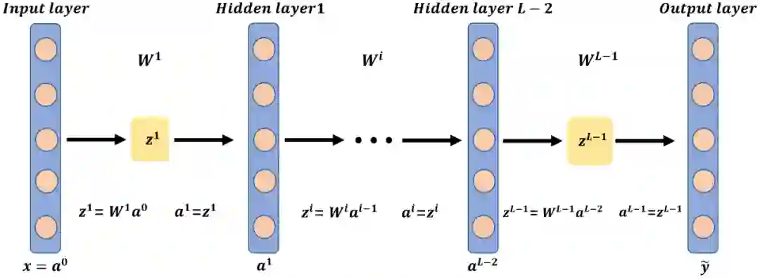 ▲ 图7:L层含激活函数的前向传播过程 图 7 表示的是 L 层含激活函数神经网络的前向传播过程,其中损失函数如下所示: