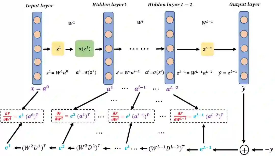 根据公式(32)将 L 层含激活函数的 BP 原理可以形象地表示为图8所示:▲ 图8:L层含激活函数的BP原理图