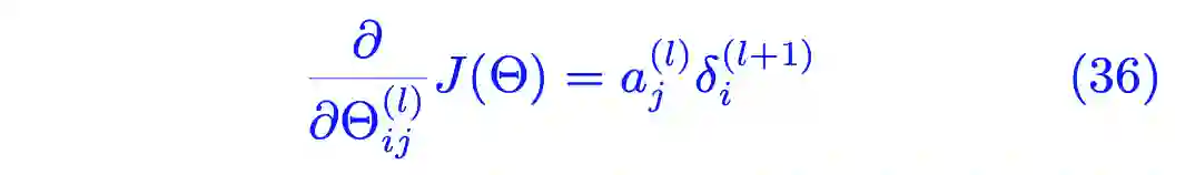 从最后一层的误差开始计算,误差是激活单元的预测 与实际值 之间的误差。用 来表示误差,则: