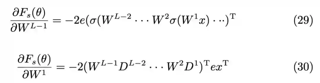 根据公式(25),(26),(27)将 4 层含激活函数的 BP 原理可以形象地表示为图 6,跟 section 4 中的 4 层无激活函数 BP 原理示意图的差异在于后向传播的误差信息需要多乘一个对角矩阵 。 ▲ 图6:4层含激活函数的BP原理图 L 层含激活函数的神经网络