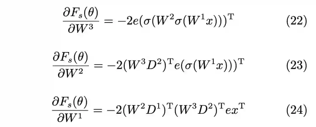 因为第一层是输入变量,不存在误差,有了所有的误差表达式之后,便可以计算各个层权重的偏导数为: