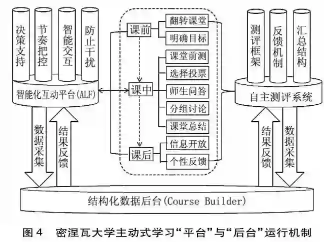 在线教育是大数据时代的产物,挖掘教育数据、分析学习状态已成为教育技术革新的核心任务。密捏瓦大学开发的主动式学习论坛平台好比是建立在关系性数据库上的“采集合成器”,通过对学生课堂表现的数据统计分析,为教师了解学生的课堂状态与学习体验,把控课堂教学节奏,发现学生的学习规律以及探究教学方法和策略提供了参考。当前,国内不少高校纷纷改建智慧教室,希冀利用数据指导教学,但我们发现,由于现有技术的“智慧”有限,有效数据的获取及对数据的功能应用还不充分,真正意义上的个性化学习还未落实,依赖教师个人认知经验和判断的教学组织模式仍占主流,课堂教学的科学性有待于提尚。