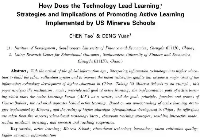 关键词:主动式学习;密涅瓦大学;教育技术创新;人才培养质量;高等教育信息化