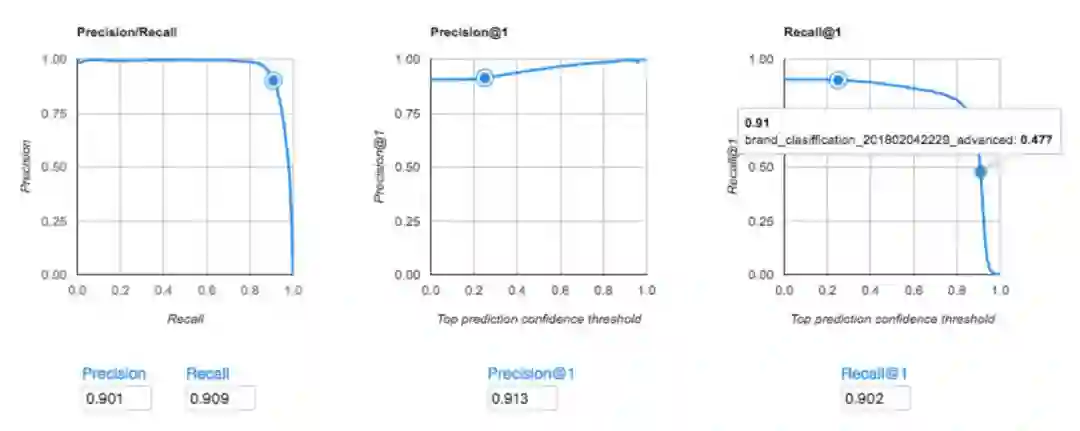 Mercari的AutoML Vision模型(高级模式)的准确性分数(精确度/召回率)