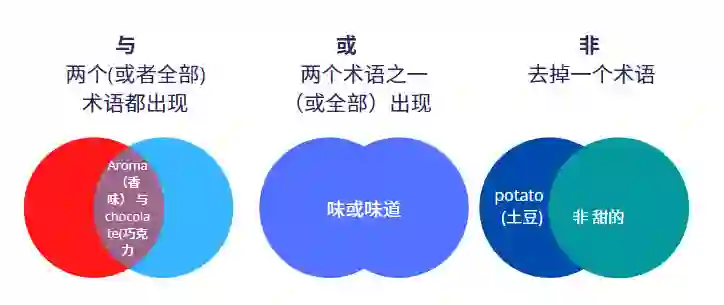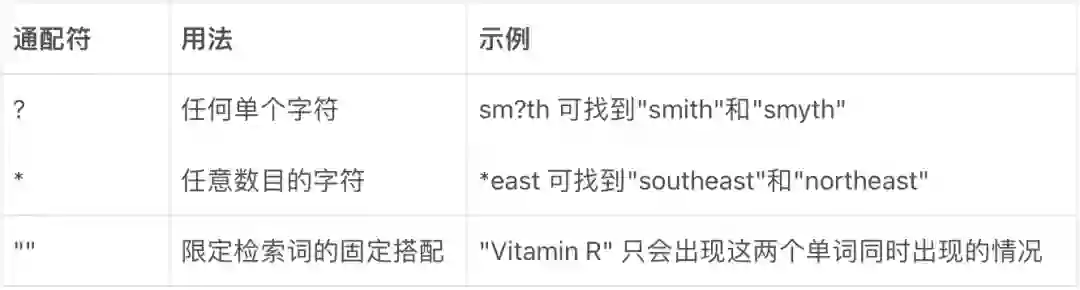 在输入搜索信息时,Publish or Perish 支持基本的布尔运算符和通配符。前者包括了 AND、OR、NOT(或、与、非)这三个词组,用来表示多个词语之间是如何关联的,具体规则如下图所示: