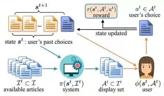 几乎对所有的在线服务平台来说,推荐系统都是很关键的一部分。系统和用户之间的交互一般是这样的:系统推荐一个页面给用户,用户提供反馈,然后系统再推荐一个新的页面。