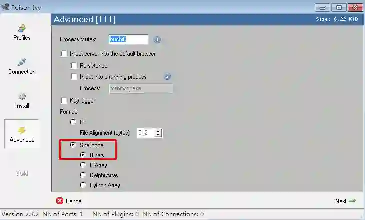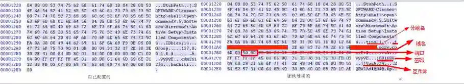 通过分析测试Poison Ivy木马生成的shellcode格式与该攻击载荷中使用的shellcode格式比较,得到每个配置字段在shellcode中的位置和含义。