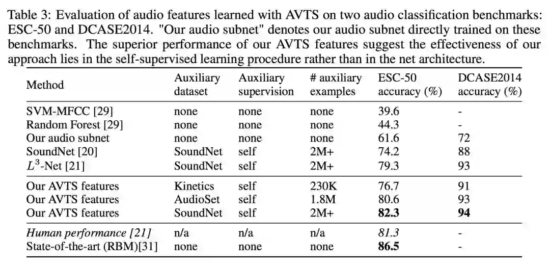 可以看到,AVTS 在音频分类任务上取得了比人工稍好的效果。更多实验,可以进一步阅读原文。