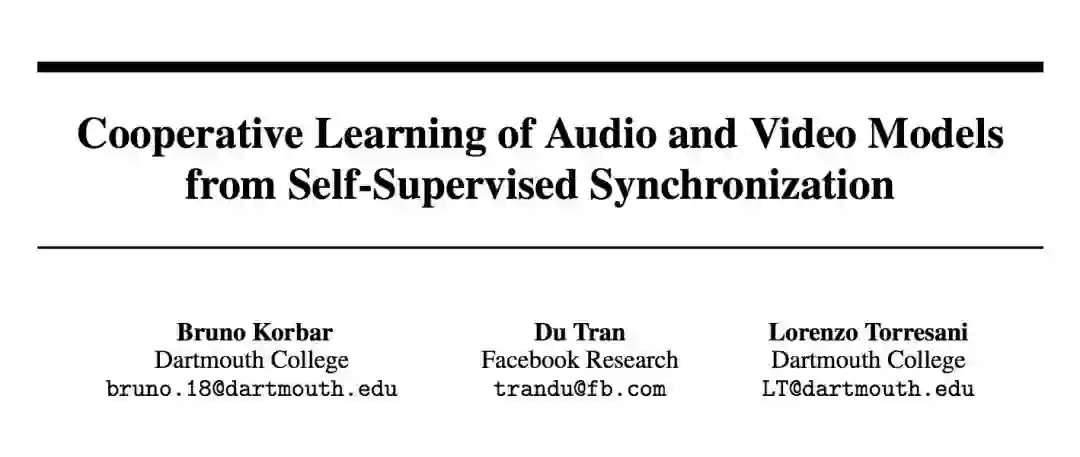 达特茅斯学院和 Facebook 联合发表于 NeurIPS 2018 的这篇文章正是通过对视觉和听觉信息做同一性判断,在整体上优化视觉特征和听觉特征提取网络,在独立模态下也提高了各自的任务准确率。不同于我们之前说的 Look, Listen and Learn [1],这篇论文不仅仅在语义上判断视觉和听觉的一致性,还在时序上做了严格对齐判断。