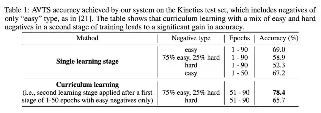 也是对视觉和听觉信息做关联性判断,但是判断视觉和听觉关联上仅仅是通过语义上是否关联判断的,而论文 AVTS 则是在此基础上考虑到视频的时序信息,进一步严格了视觉和听觉的同步性判断。