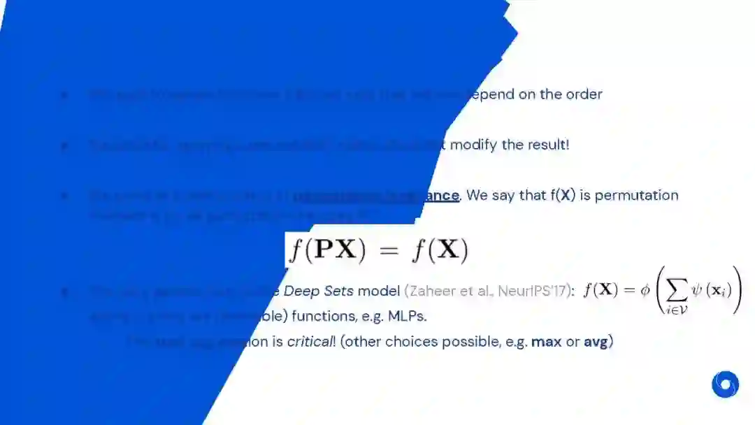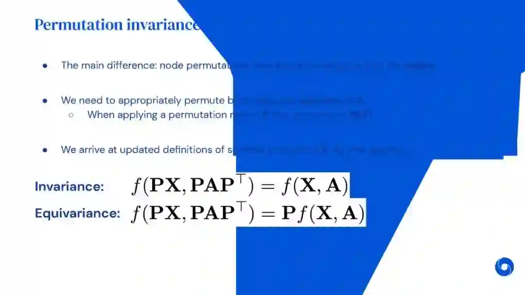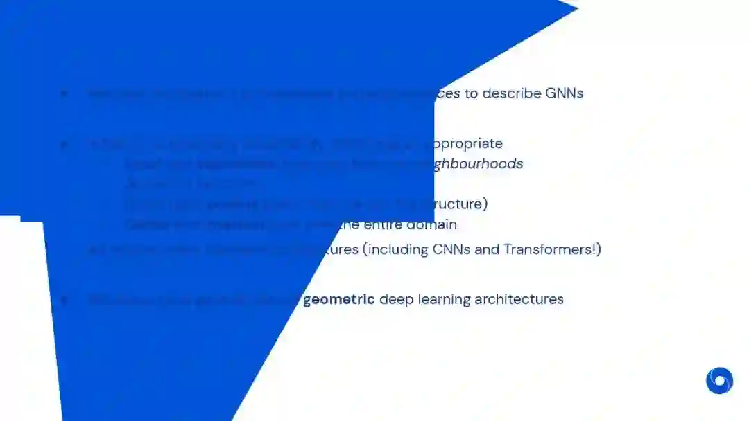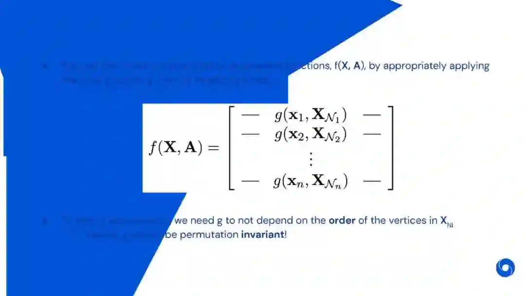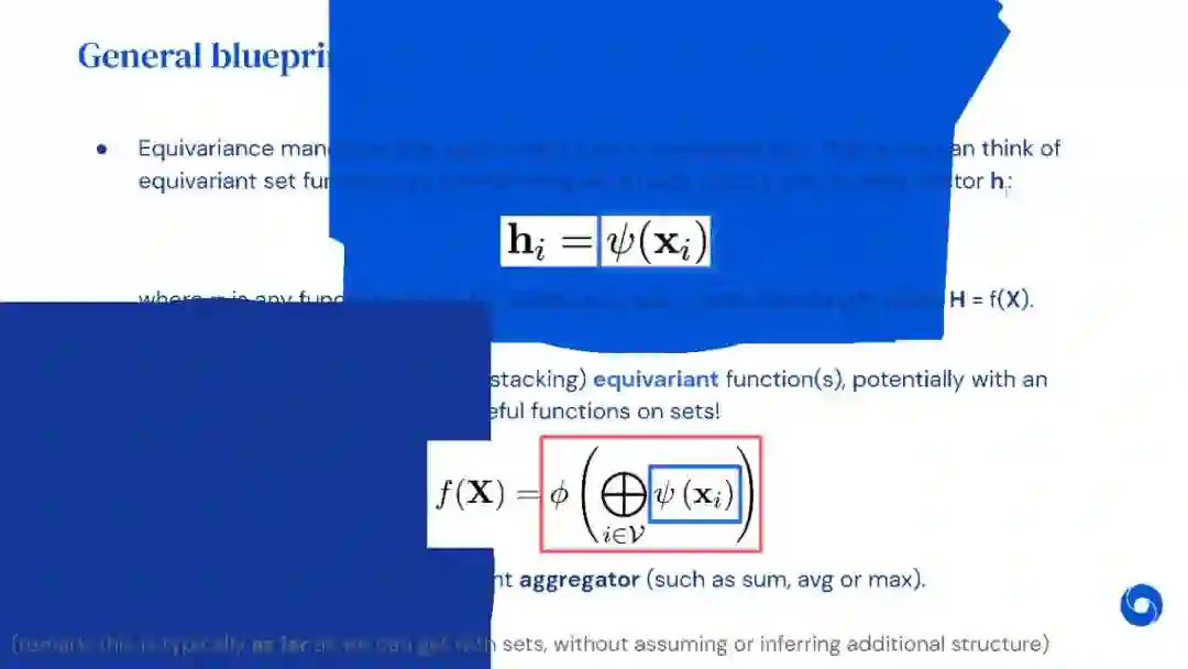 在这次演讲中,我将尝试对GNNs提供一个“鸟瞰”的视角。在快速学习使用图表示学习的动机之后,我将从排列不变性和等变性的第一原则推导出GNN。通过这一视角,我将描述来自不同领域 (图嵌入、图信号处理、概率图模型和图同构测试)的研究人员是如何独立地得出本质上相同的GNN概念的。