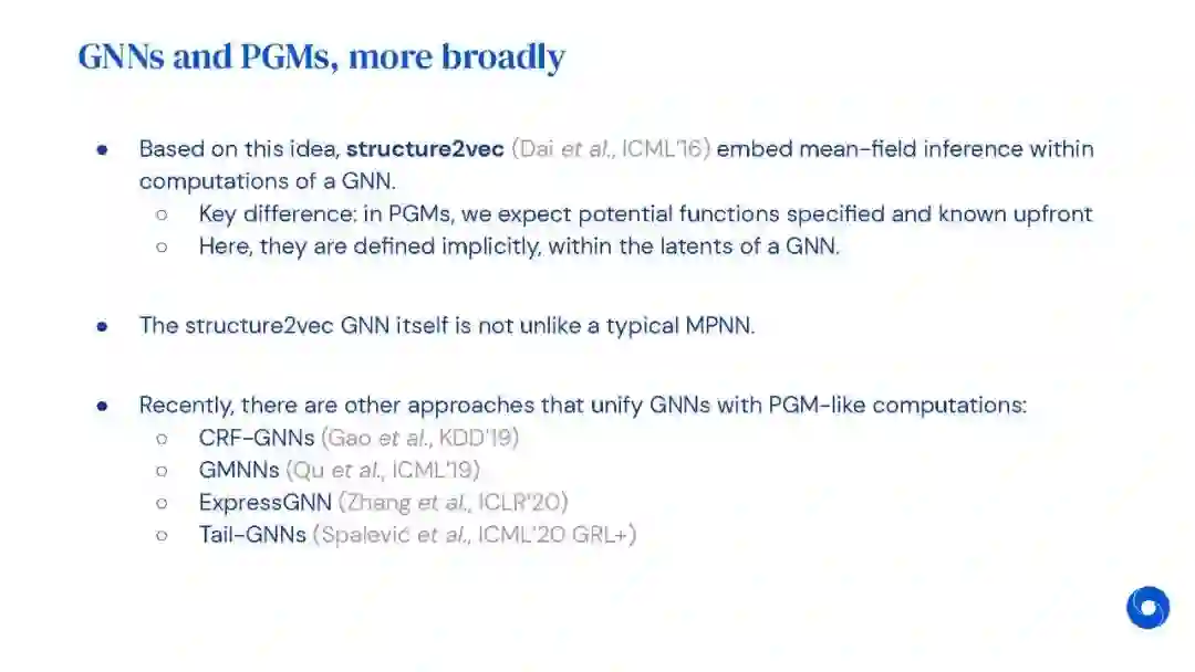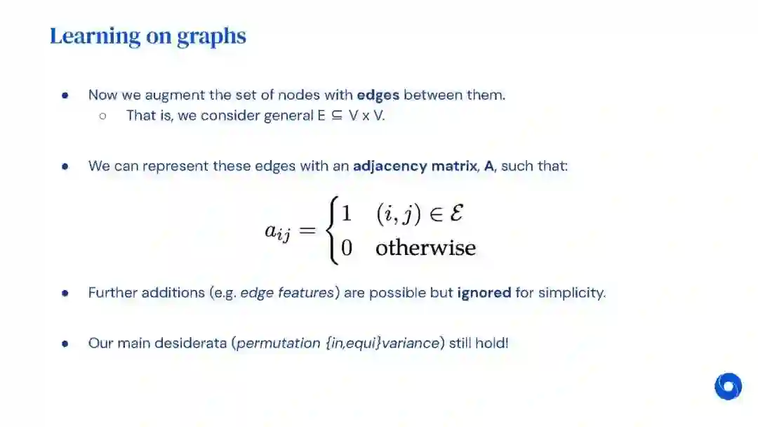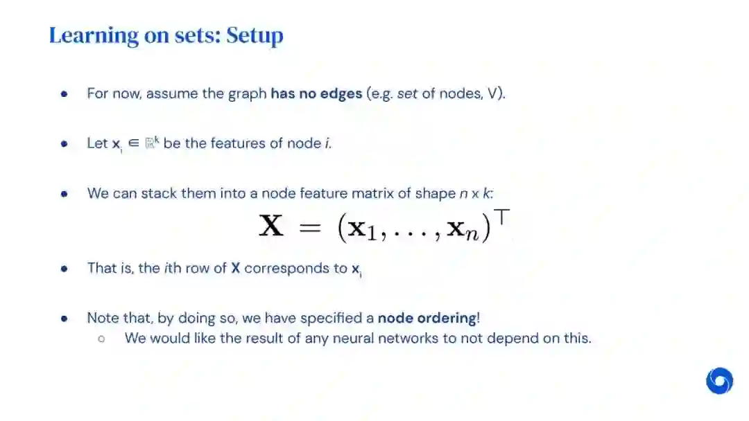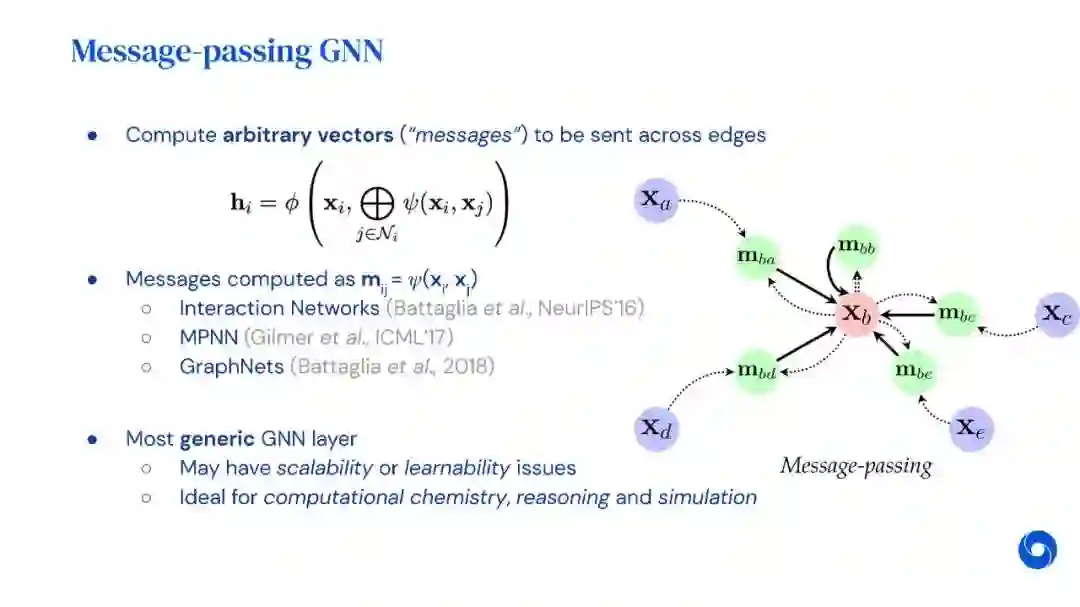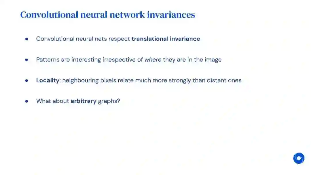 在这次演讲中,我将尝试对GNNs提供一个“鸟瞰”的视角。在快速学习使用图表示学习的动机之后,我将从排列不变性和等变性的第一原则推导出GNN。通过这一视角,我将描述来自不同领域 (图嵌入、图信号处理、概率图模型和图同构测试)的研究人员是如何独立地得出本质上相同的GNN概念的。