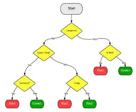 决策树算法将一组“弱”学习器集合在一起,形成一种强算法,这些学习器组织在树状结构中,相互分支。一种流行的决策树算法是随机森林算法。在该算法中,弱学习器是随机选择的,这往往可以获得一个强预测器。在下面的例子中,我们可以发现许多共同的特征(就像眼睛是蓝的或者不是蓝色的),它们都不足以单独识别动物。然而,当我们把所有这些观察结合在一起时,我们就能形成一个更完整的画面,并做出更准确的预测。
