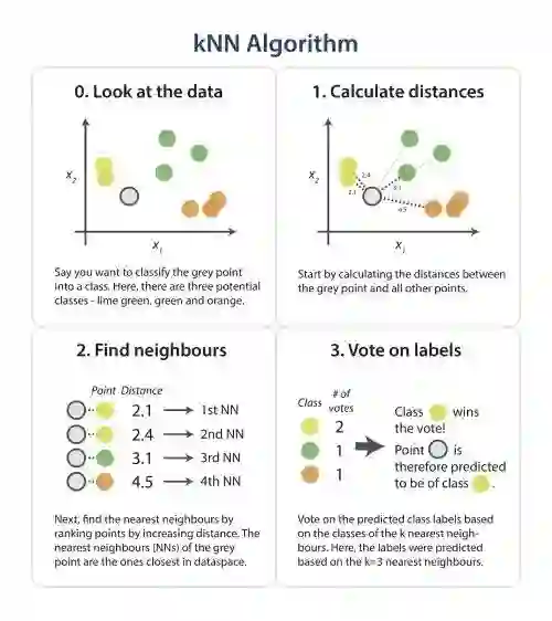 基于实例的分析使用提供数据的特定实例来预测结果。最著名的基于实例的算法是k-最近邻算法,也称为KNN。KNN用于分类,比较数据点的距离,并将每个点分配给它最接近的组。