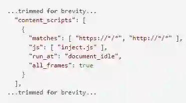 Chrome的Read&Write插件利用名为“inject.js”的Google浏览器内置脚本(Content Script)来向诸如Google Docs在内的各种在线文档页面插入一个自定义工具栏,以方便读者用户可以利用该插件进行文档读写。默认情况下,此脚本将会向所有HTTP和HTTPS源执行插入,插件的使用说明中已定义了这一点: