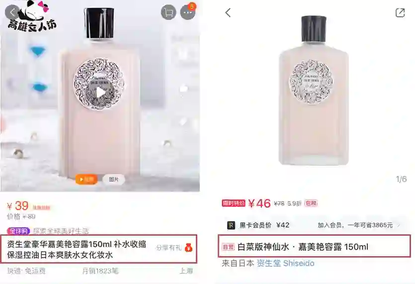 右边是小红书的文案“白菜版的神仙水·嘉美艳容露”,作为直男虽然我并清楚这个嘉美艳容露到底是干什么的,它到底在化妆品界有多牛逼。
