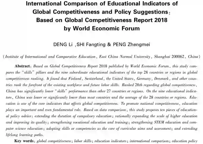 关键词:全球竞争力;劳动力技能;教育指标;国际比较;教育政策