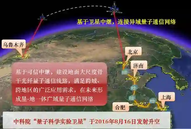 2017年9月,世界首条量子保密通信干线——「京沪干线」正式开通;结合『京沪干线」与「墨子号」的天地链路,中国成功实现了洲际量子保密通信。